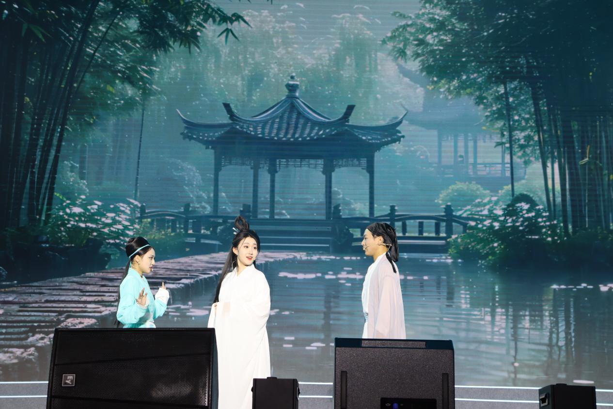 視頻《南大好聲音》拉開了第三篇章的序幕。“小南瓜”親子表演《歡歌》,其樂融融;情景劇《千年就一回》以喜劇的形式,別開生面地講述了白娘子和許仙的愛情告白;舞蹈串燒《悅動青春》展現(xiàn)了當代大學生的青春風采;音舞說唱《南昌大學向前進》激勵著每一位南大人勇往直前、追求卓越。