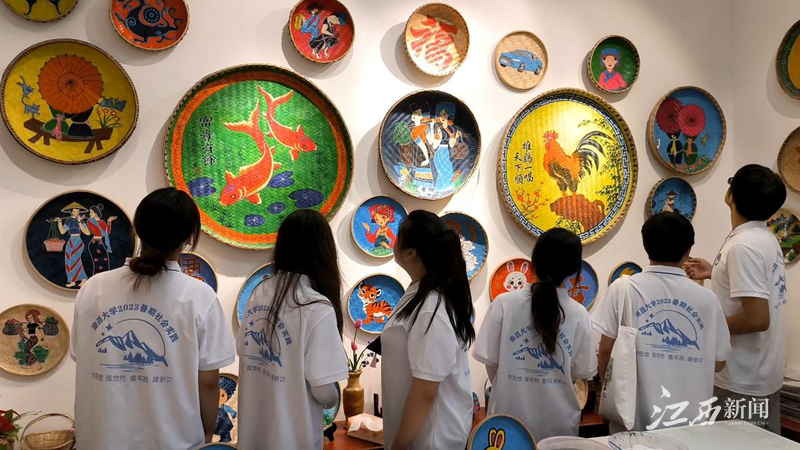 (隊(duì)員們參觀布依簸箕畫傳承點(diǎn))