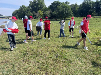 實踐隊員于贛江支流瀘水河畔開展“河小青”環保活動