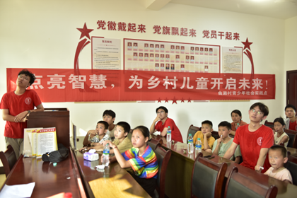 實踐隊員在鄉村開展教育活動現場與合影